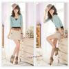J10_เสื้อผ้าแฟชั่นญี่ปุ่นคอกลมผ้าชีฟองประดับโบว์ต่อด้วย